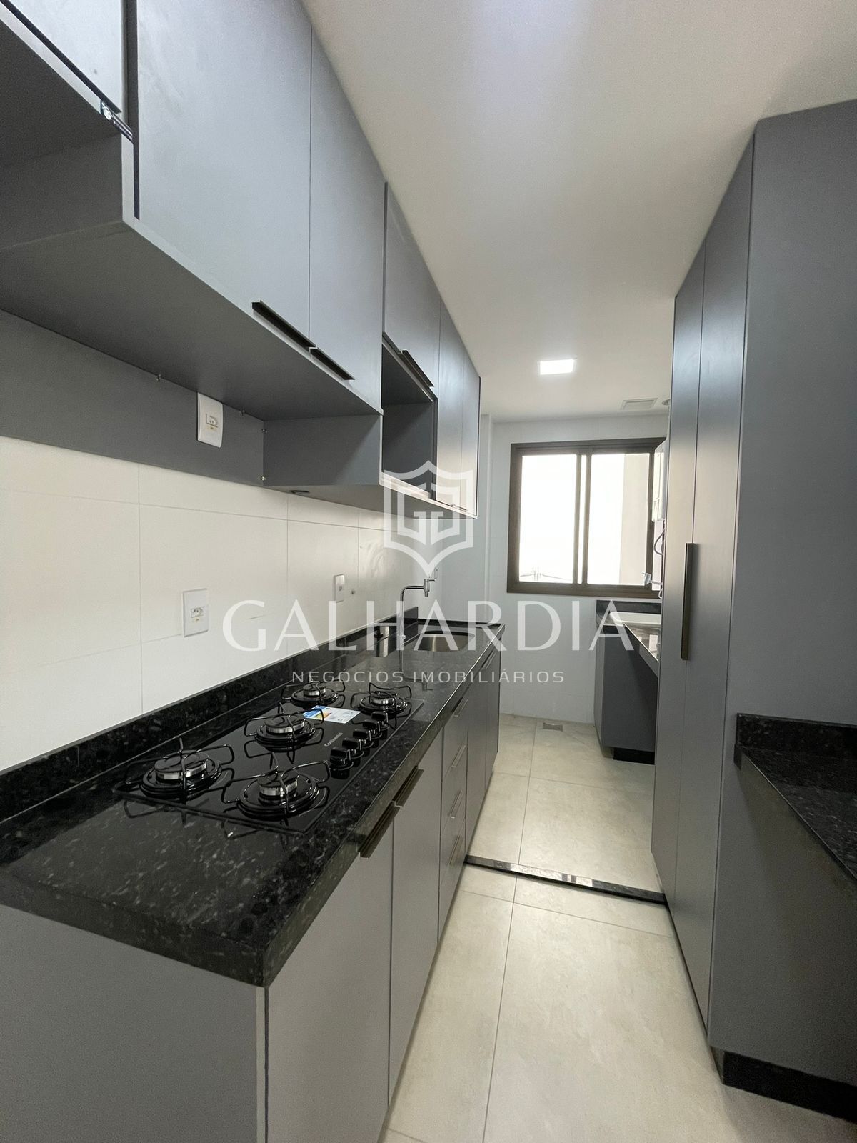 Cozinha conjugada com área de serviço.